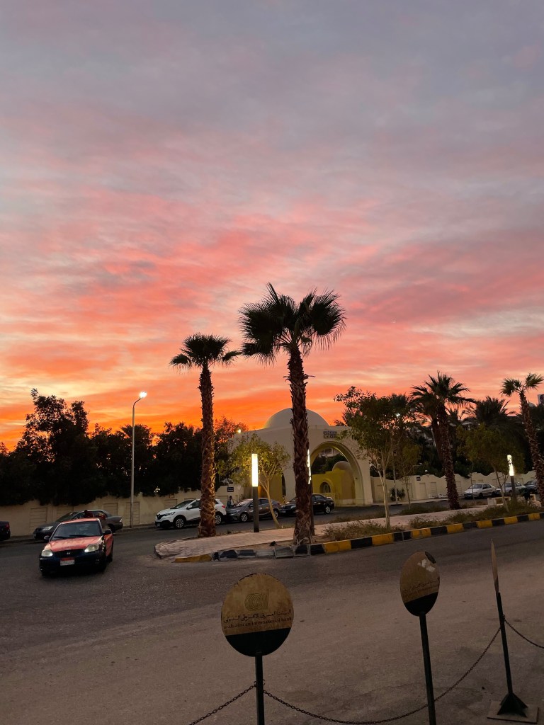 前往酒店的路上,还真看到美丽光景呢,Hurghada 傍晚的天空美得一塌糊涂!让本来普通的城镇街道瞬间焕然新生成天堂般宁静祥和的样子。